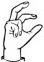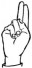 На ћирилици написано АЊА БИЗУМИЋ састоји се из 10 слова [?]. Исписано ћириличном једноручном азбуком за глувонеме: